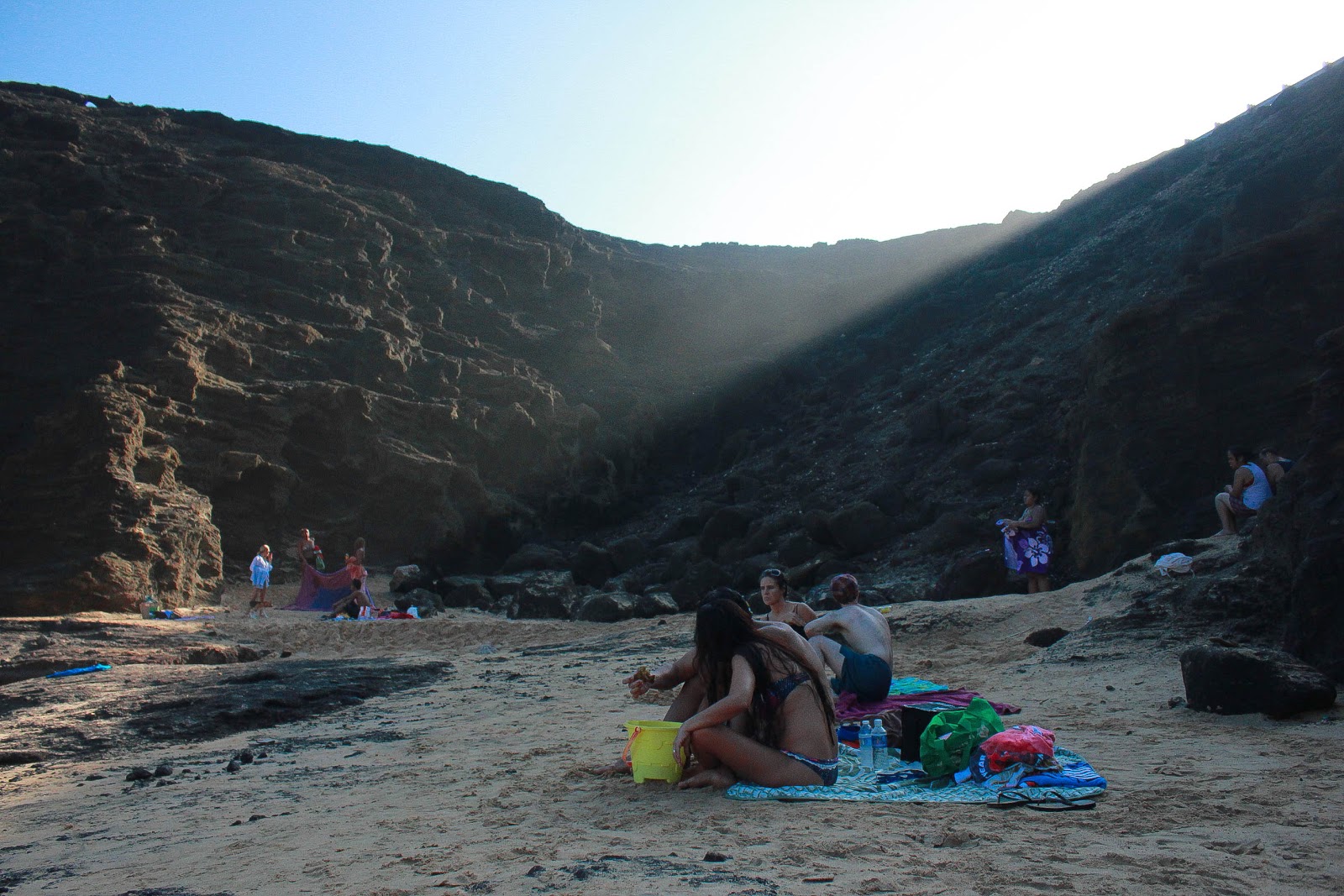 So we decided to head to ....(dun dun dun) the SECRET BEACH. We had been eyeing this beach for over a year, and we finally decided to go. Near Sandy's is the blow hole lookout point. The blow hole is a rock cliff with cracks in it where waves come in through the cracks and the water shoots up like a whale's blow hole. When you are up at the blow hole lookout point you can see down a steep cliff to this tiny cove with a beach in it. It is gorgeous, and usually there is no one there, but the day we went there was a circus there! (Almost literally, there was a bunch of hipsters from Denver there hula hooping like they were the shiz)